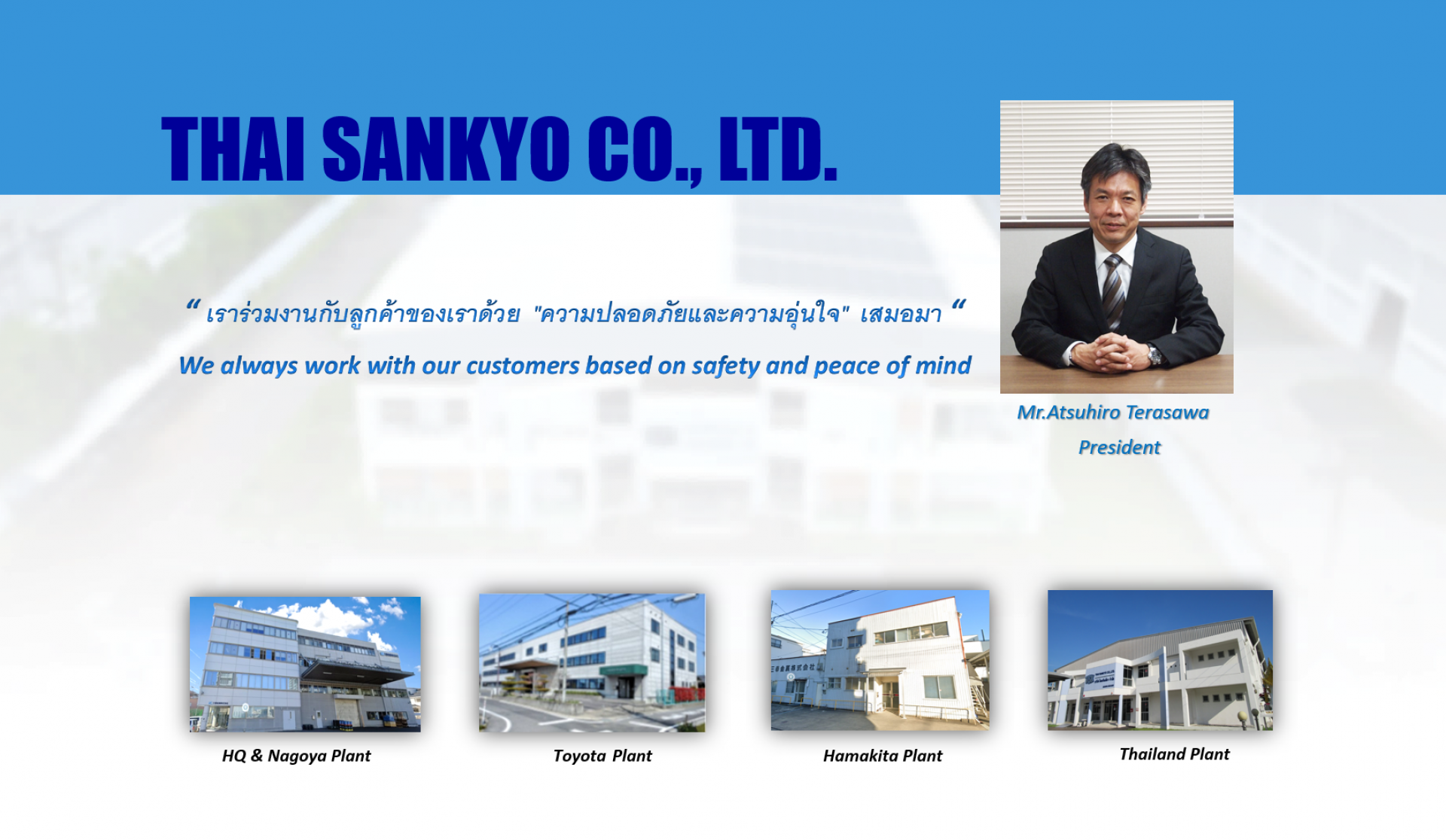 Thai Sankyo Co., Ltd. (TSK) is a company established in Thailand since 2011, starting with the production of motorcycle fuel tank cap parts in the Pinthong Industrial Estate under investment promotion from BOI.